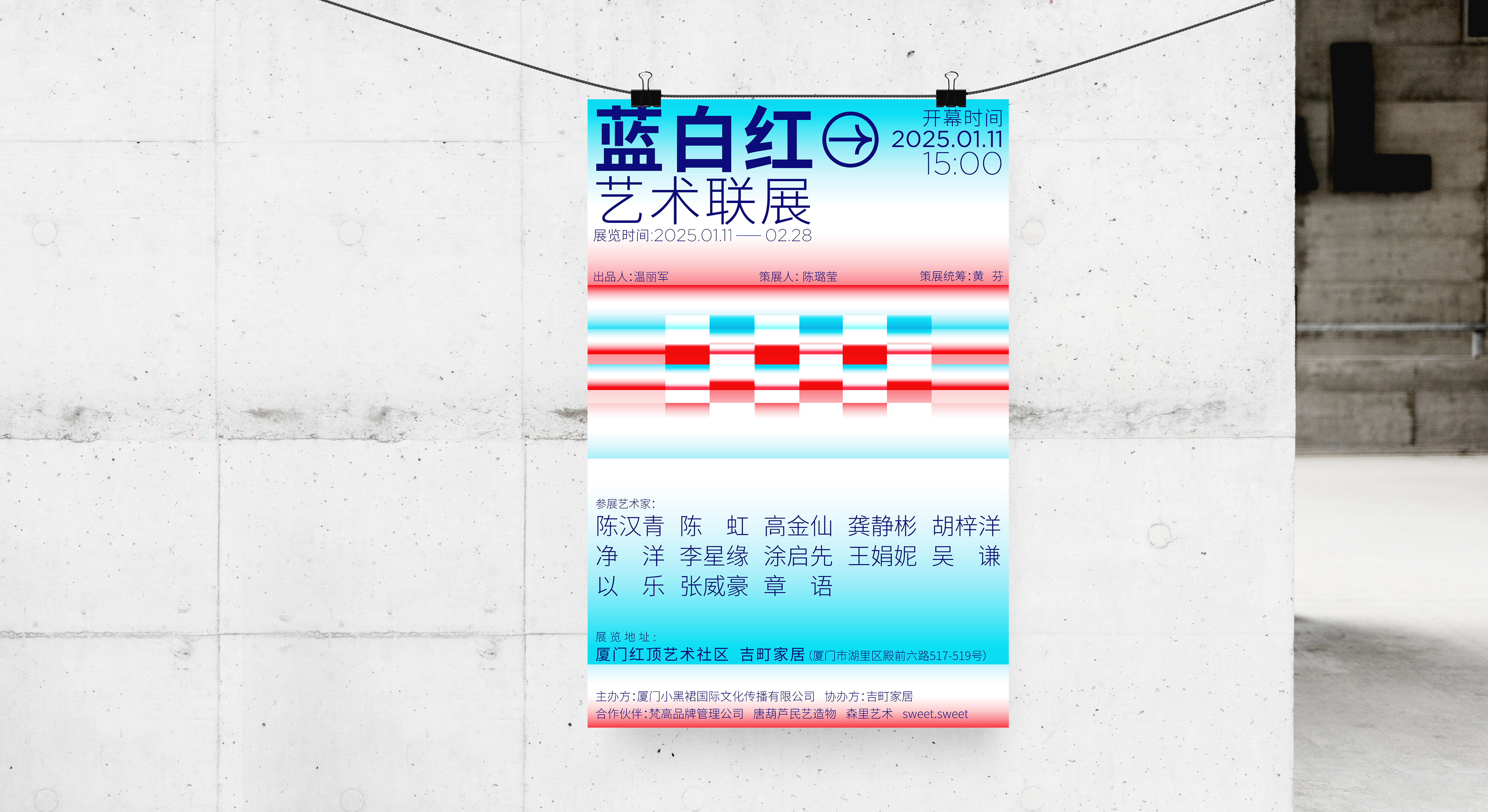 本次展览汇集了十三位优秀的中国当代艺术家的作品,以“蓝 白 红”为主题,让我们以艺术之名,在生命的这场流动的盛宴里,融汇中西,贯穿古今,相遇相聚。